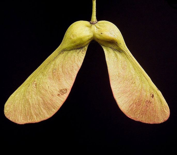 Die Früchte sind Spaltfrüchte, mit zwei im spitzen Winkel abstehenden Flügeln. Sie sind typische Schraubenflieger mit ca. 16 Umdrehungen pro Sekunde. Vom Wind werden sie oft mehr als 100 Meter weit getragen.