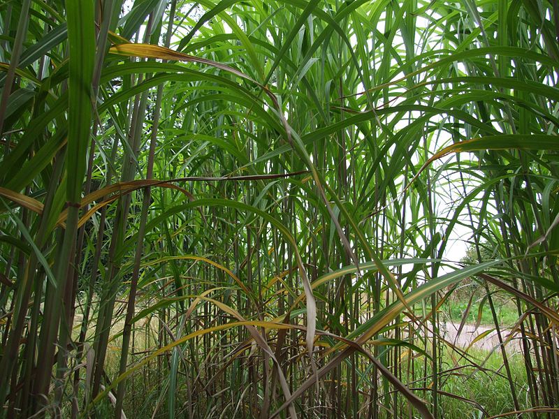 Die unverzweigten, festen Halme haben einen Durchmesser von 3 bis 10 Millimeter, die Knoten können kahl oder leicht behaart sein. Die am Ansatz des Stängels sowie am Stängel entlang wechselständig stehenden Blätter zeigen die für C4-Pflanzen charakteristische aufrechte Blattstellung, die eine maximale Lichtaufnahme ermöglicht. Die Blattscheide kann kahl oder filzig behaart sein. Die 18 bis 75 Zentimeter lange und 0,3 bis 2 (bis 4) Zentimeter breite Blattspreite ist linealisch und flach, vom Ansatz her verjüngt sie sich oder ist breit abgerundet und läuft spitz zu. Die Mittelrippe steht hervor, die Ränder sind rau oder glatt. Die 0,5 bis 4 Millimeter lange Ligula ist bewimpert.